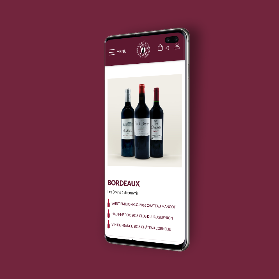 Le conseil étant primordial dans le domaine de l’oenologie, nos développeurs ont mis en place une fonctionnalité de chat et d’avis, ainsi qu’une section “articles” afin d’informer, de rassurer et de conseiller les internautes à la recherche de la perle rare.