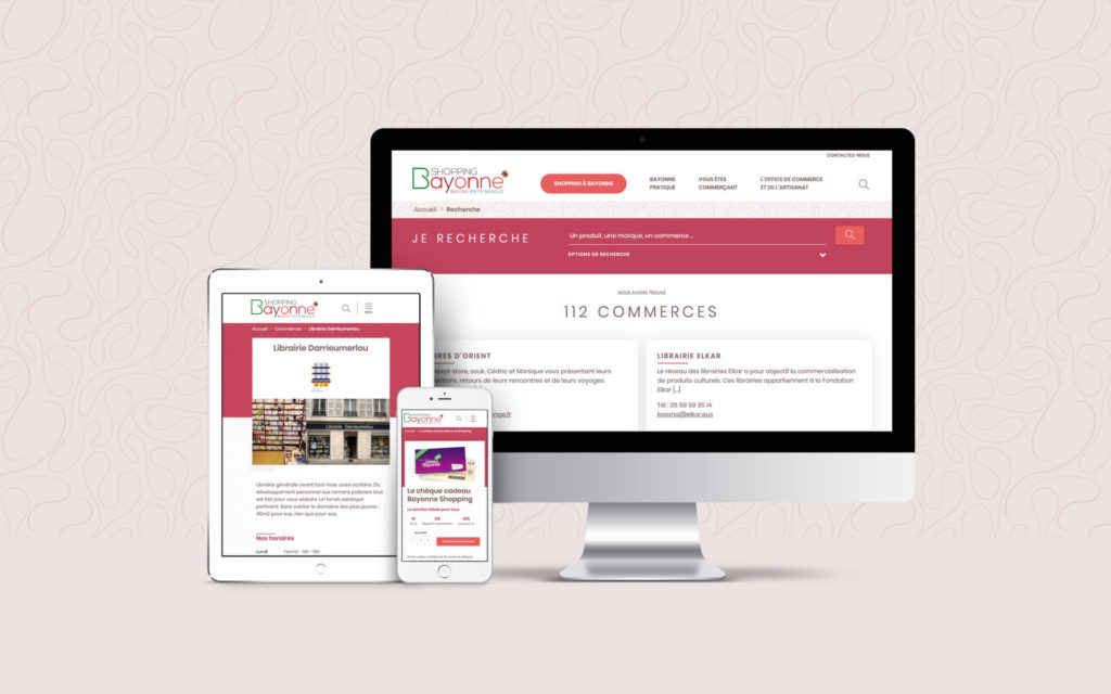 L’Office de Commerce et de l’Artisanat de Bayonne travaille à la valorisation des commerces du centre-ville de Bayonne. Ils nous ont confié la refonte du site internet Bayonne Shopping, cet outil doit permettre aux visiteurs de trouver facilement les commerces et marques qu’ils souhaitent mais également de diffuser de l’information auprès des commerçants de la ville et de vendre le Chèque Cadeau Bayonne Shopping.