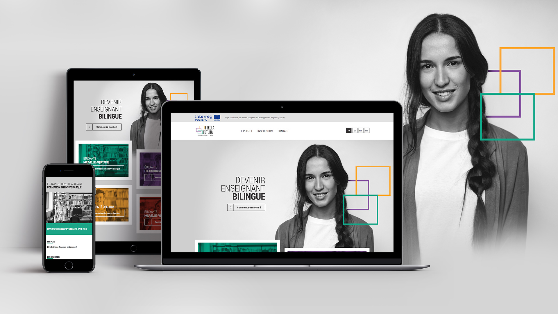 Dans la réalisation du projet Eskola Futura, le challenge était de créer une interface permettant de faciliter l’accès à l’information en 4 langues différentes sans parasiter l’ergonomie et la navigation sur le site internet. Nous avons donc dû suivre de près la gestion et la création des contenus dans les 4 langues (français, espagnol, basque, occitan) afin de les adapter à l’ergonomie du site.