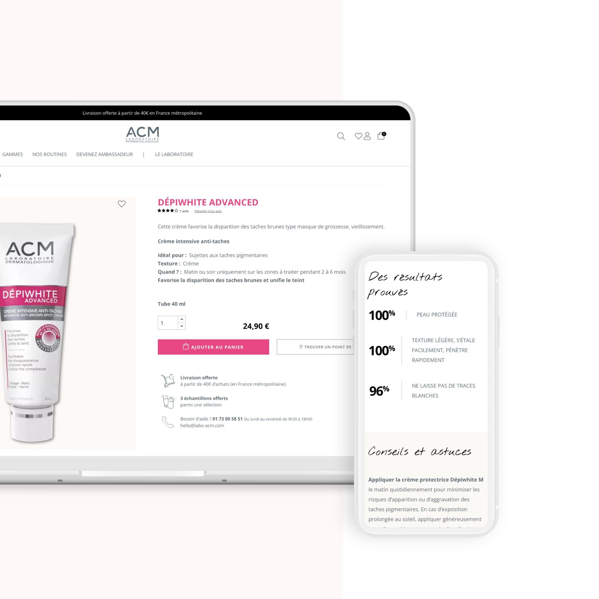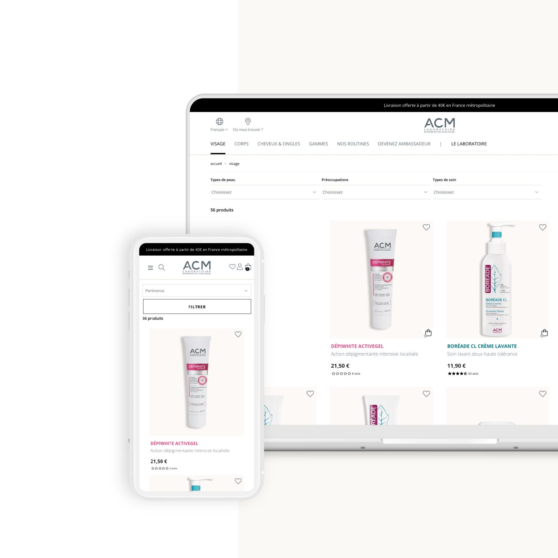 Client historique de l’Agence, nous accompagnons le Laboratoire ACM depuis plus de 17 ans, sur la création graphique des supports de communication papier, du packaging ou encore dans le cas présent sur la gestion de leur site internet et boutique en ligne pour leurs produits dermatologiques.