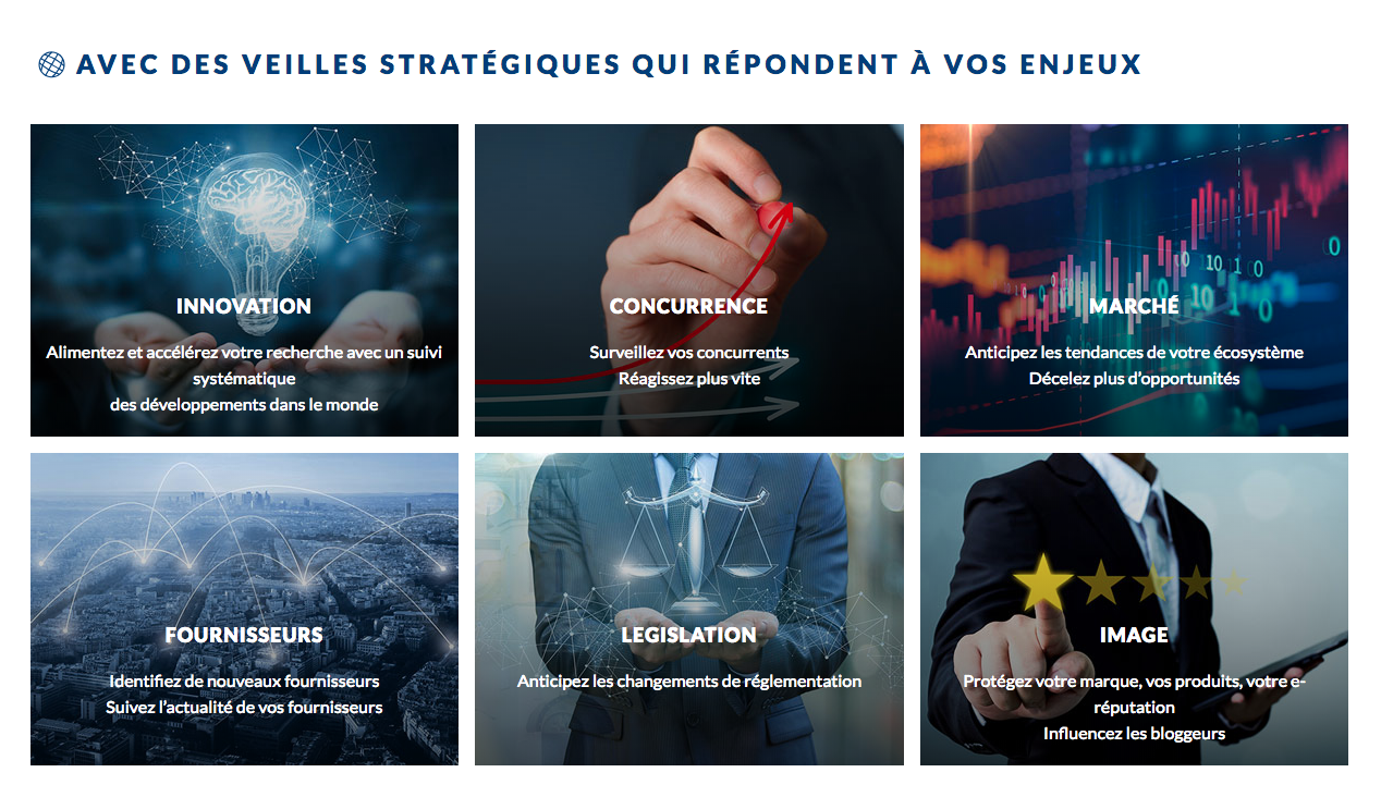 Vigiworld est une société qui propose une solution “clé en main” de services de veille et d’informations stratégiques externalisées. Les fondateurs ont souhaité permettre à tout type d’entreprise d’avoir accès à un service de veille performant.